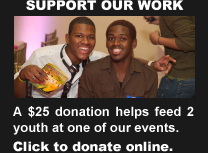 Youth love to have fun! And as such, our approach is to reach out to them via an outlet that is fun, entertaining, yet educational at the same time. By offering a free party with music & free food, we are able to attract over 200 local youth who may otherwise not be motivated to attend a traditional community activity. Once at the event, youth attendees are able to interact with several local service providers who offer a variety of services to them, including access to transitional living and educational programs. We also have a Peer-to-Peer model in effect at all events, in which youth ambassadors interact with other youth and encourage them to get tested for HIV and other STD's, attend weekly workshops & support groups, and sign up for special programs. Rounding things out is a group of dedicated and caring Volunteers made up of parents, educators, and community members that all help make this a diverse gathering that bridges community. All events are alcohol & tobacco-free.